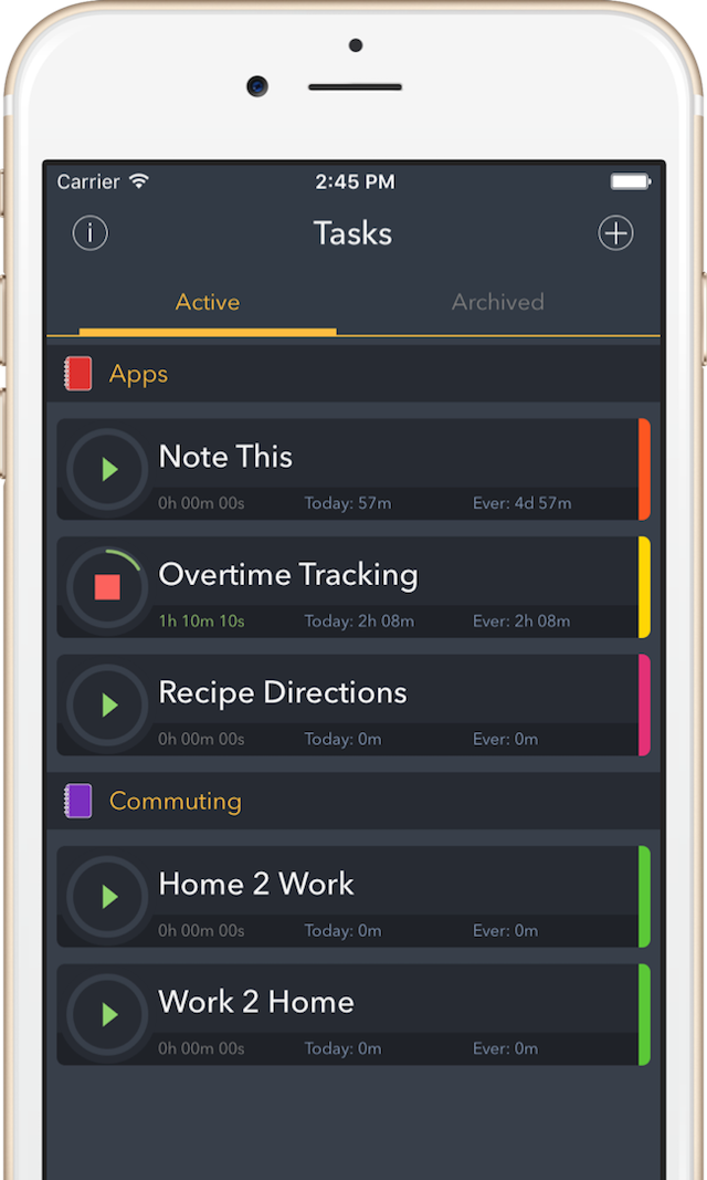 You can also define geofences for your tasks to remind you to start or stop timers.